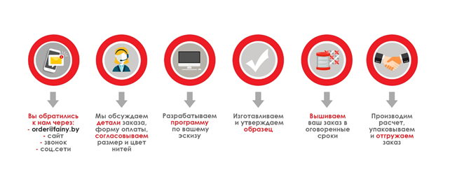 - В письме указать размер, материал или изделие (на которое будет наноситься вышивка), объем заказа.